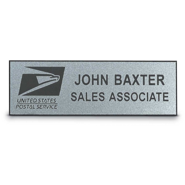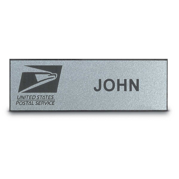 Postal Name Badges are available in one or two lines with pin or magnetic fasteners. All styles feature the postal logo that is laser engraved. High performance plastic construction is durable and long-lasting.